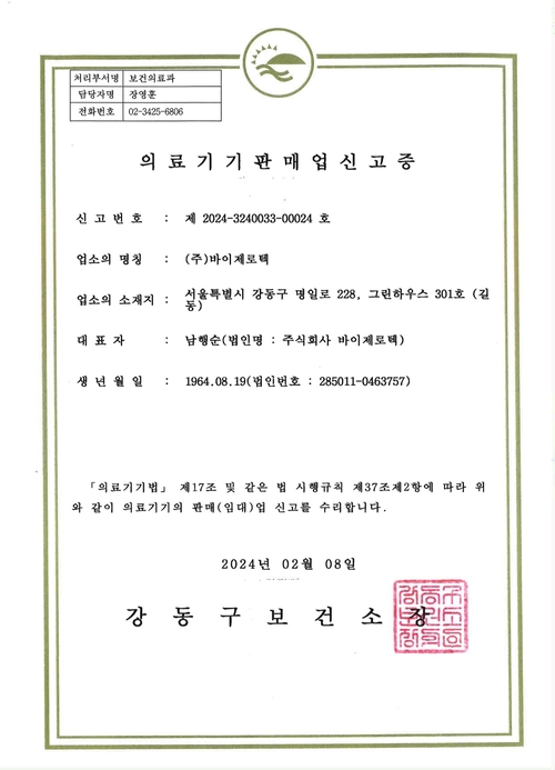 - location_on 서울 강동구 명일로 228, 그린하우스 301호 (주)바이제로텍